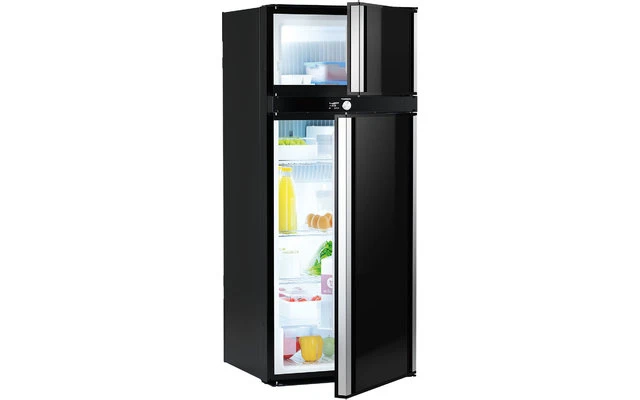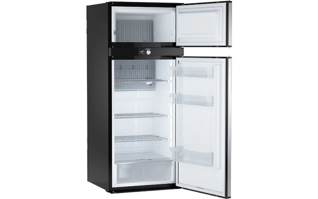 Este frigorífico de absorción de última generación ofrece una comodidad sin precedentes: selección automática de la fuente de energía (12 V, 230 V o gas), una puerta que se abre hacia la izquierda y hacia la derecha, y un interior versátil con mucho espacio para sus alimentos