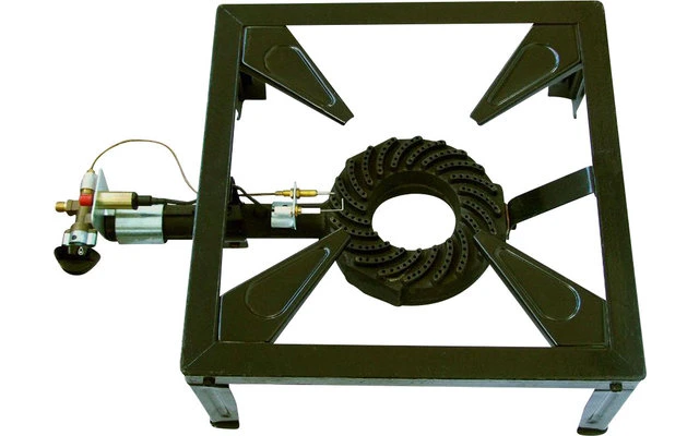 Cocina de taburetecon quemador estable al viento de hierro fundido macizo y marco de chapa de acero.