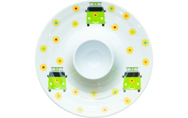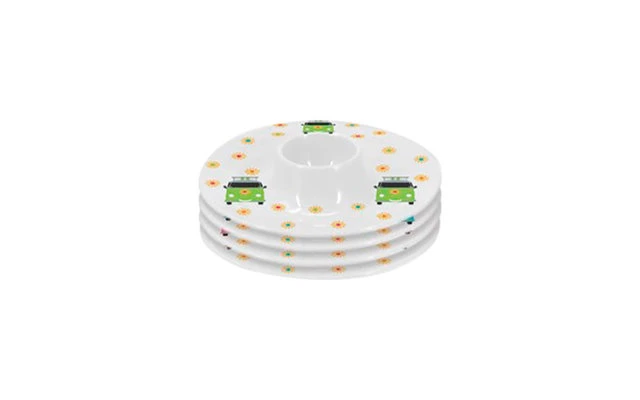 juego de hueveras de 4 piezas con diseño Camper Smiles para empezar el día de forma perfecta El juego es irrompible, fácil de limpiar, apto para el lavavajillas y ligero.