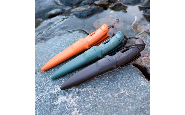 La hoja de acero inoxidable Sandvik, de calidad superior, está fabricada en un 90% de acero reciclado: robusta, versátil y absolutamente adecuada para el uso diario, ya sea para cortar cuerda, encender fuego o compartir manzanas con los niños.