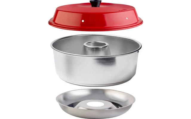 Con un volumen de 3 litros, el Maxiform es la ampliación ideal del horno de camping OMNIA normal. Junto con la base y la tapa del horno de camping OMNIA, tiene un horno «grande» de 3 partes, para 4 a 6 personas.