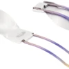 Cubiertos universales extra largos y ligeros con tenedor, cuchara y práctico ojo de sujeción. El tenedor de titanio inoxidable impresiona por sus bordes redondeados y su forma ergonómica. Ideal para contenedores térmicos altos o comida de viaje de la bolsa. Gracias a su multifuncionalidad, se ahorra peso extra. El spork es el compañero perfecto para los viajes, el senderismo y el trekking. Fácil de limpiar y apto para el lavavajillas.