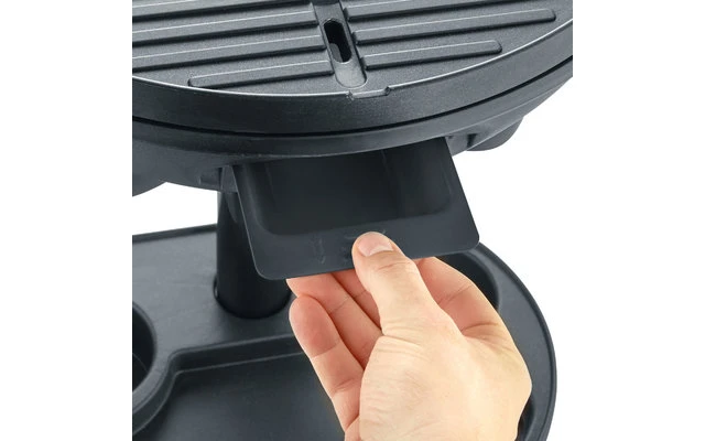 Diversión en la barbacoa en el balcón o en el jardÃn: Barbacoa autónoma para preparar rápidamente deliciosos alimentos – Placa de parrilla de metal fundido a presión con elemento calefactor integrado – Altas temperaturas, calentamiento rápido: Preparación óptima de alimentos jugosos gracias a la placa de parrilla con revestimiento cerámico y al capó con termómetro integrado, Potencia máxima de 2,5 kW. Potencia de 2.000 W – Patrón de parrilla tÃpico y chamuscado continuo gracias a la gran superficie de la parrilla con superficie lisa y acanalada, Agradable altura de trabajo de 83 cm, La carcasa de la parrilla puede utilizarse también como parrilla de mesa – Calidad alemana, Capó lacado, Placa de hierro fundido con elemento calefactor integrado, Protección opcional contra el viento gracias al capó metálico que puede engancharse lateralmente, Control de termostato sin escalas, Fácil limpieza gracias al capó extraÃble y a la placa de hierro fundido Cable de conexión XXL: 2,8 m de cable de alimentación. Gran capacidad gracias a la gran superficie de la parrilla con 41 cm de diámetro (aprox. 1.320 cm2) para elegir libremente el espacio.