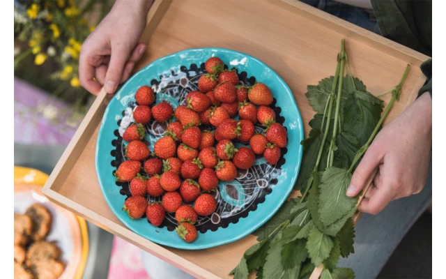Vajilla de camping de alta calidad con un diseño colorido. Disponible en 4 colores. Resistente a los arañazos, a los alimentos y a las temperaturas de hasta +70°C. Apto para el lavavajillas y resistente a la rotura. No es apto para el microondas. Material: melamina.